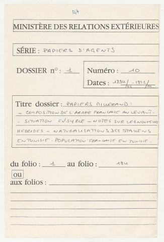 Le reste des papiers laissés par Millerand a été remis à la Bibliothèque Nationale qui les a ensuite cédés aux Archives nationales où ils sont conservés sous la cote 470 AP, voir fiche descriptive du fonds, pp. 725-727.