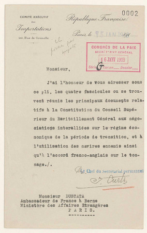 Suggestions et requêtes adressées à la Commission financière, couverture de presse concernant les clauses financières de la paix, renseignements d'ordre économique et financier, indemnités de guerre, situation monétaire allemande, questions concernant le ravitaillement et la dette des pays ennemis (janvier 1919-mars 1920).