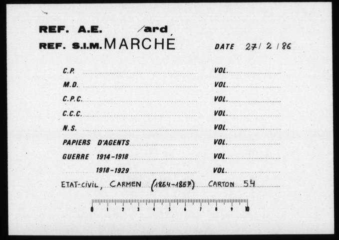 Les registres ayant été versés en volumes reliés de plusieurs années, ne correspondant pas au découpage chronologique ci-dessus, ont été intégrés dans série ad hoc, dite des Volumes par opposition aux sous-séries des Cartons.