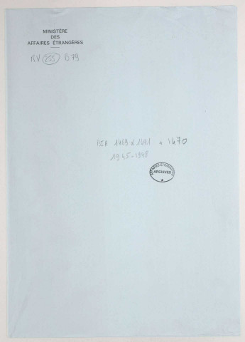 Tous les articles communicables peuvent être reproduits pour usage personnel. Pour les utilisations publiques ou commerciales, il convient de s'enquérir des conditions auprès des Archives diplomatiques.