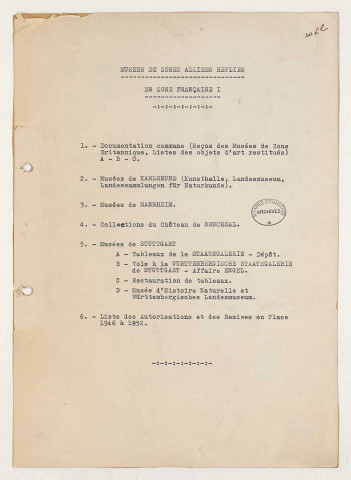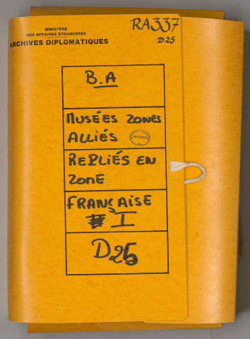 Ce fonds constitue la principale source française d'informations sur les spoliations de biens culturels commises contre les victimes juives (Alliance israélite universelle, consistoires, particuliers) et les victimes non juives (musées, bibliothèques, particuliers) pendant la Seconde Guerre mondiale. Il donne des éléments d'information sur les biens signalés spoliés par les victimes ou rapatriés par les services chargés de la récupération artistique. Il peut donner des informations sur l'itinéraire du bien, sa spoliation, sa récupération éventuelle et son rapatriement.