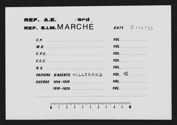 Le reste des papiers laissés par Millerand a été remis à la Bibliothèque Nationale qui les a ensuite cédés aux Archives nationales où ils sont conservés sous la cote 470 AP, voir fiche descriptive du fonds, pp. 725-727.